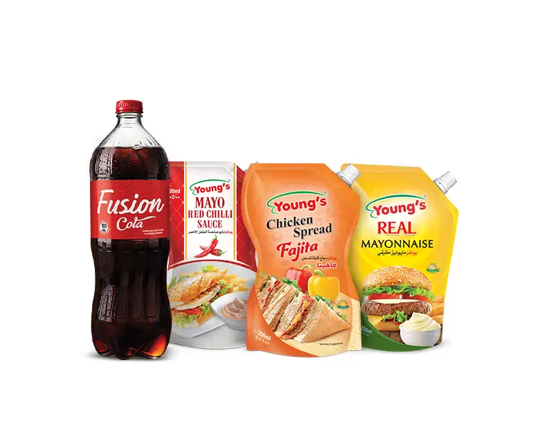 Young’s Chicken Spread Fajita 200ml Young’s Real Mayonnaise 200ml Young’s Mayo Red Chilli 200ml Fusion Cola 1.5 Ltr